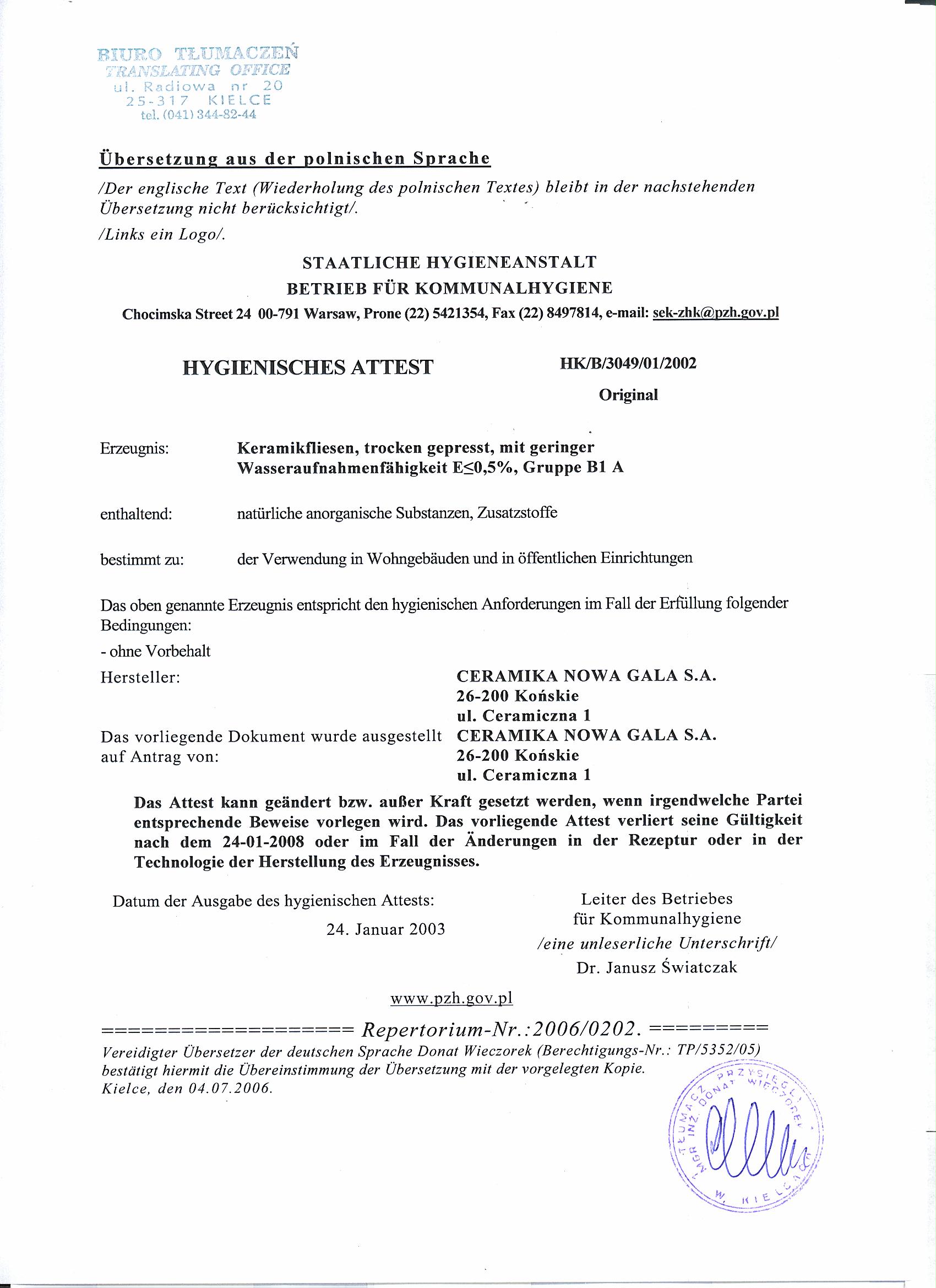 - zertifikatLB-Objekt Wandfliese BIII (pdf)
